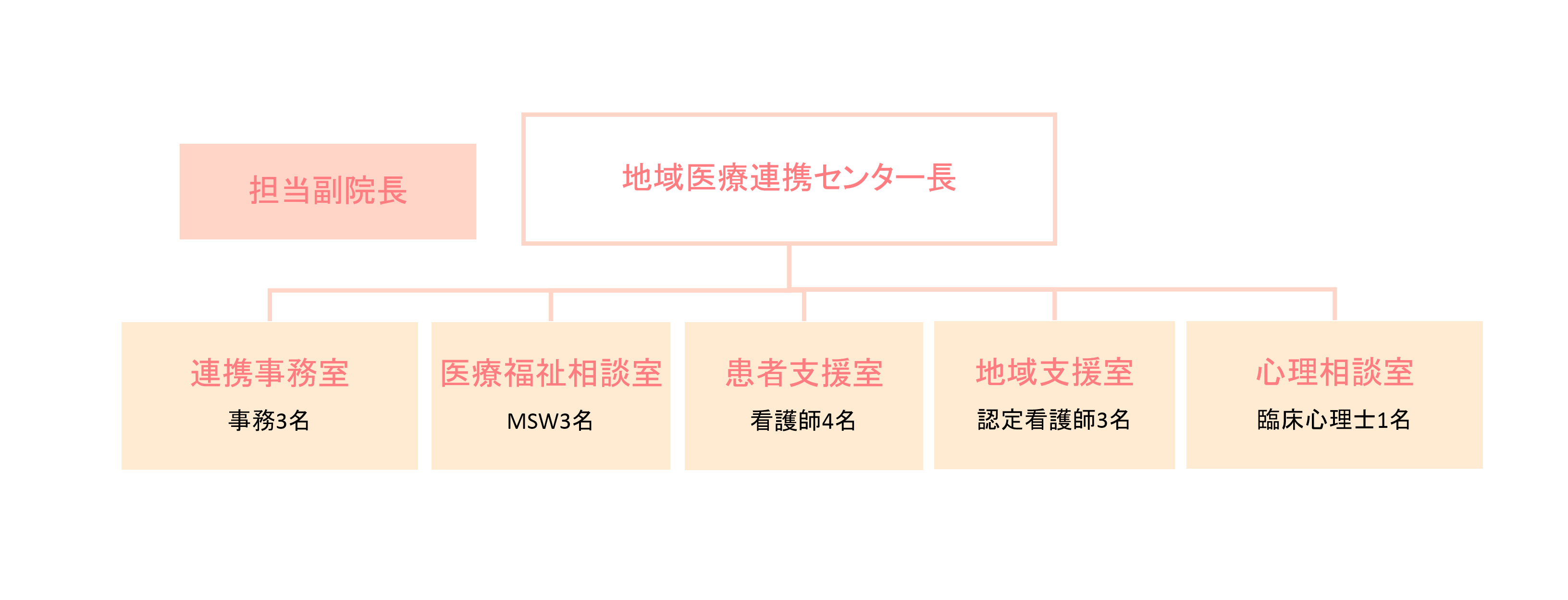 聖霊病院は、「地域多機能型ハブ病院」を目指しております。そのため、地域医療連携センターは、地域多機能型ハブ病院としての使命を遂行できるよう、地域医療連携を推進し、5室がOne Teamとなって地域の皆様の医療と介護・福祉の向上に貢献できるよう努めて参ります。