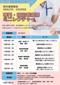 お知らせ トップページお知らせお知らせ専門・認定看護師によるミニレクチャー開催のお知らせ 専門・認定看護師によるミニレクチャー開催のお知らせ 2024/09/18 カテゴリー: お知らせ 10月10日(木)より、専門・認定看護師によるミニレクチャーを開催いたします。詳細につきましては、下記画像をクリックしてご確認ください。※12月12日(木)の回は、都合により延期いたします。 Tweet シェア prev国際骨粗鬆症財団(IOF)認定について next令和5年度 病院指標を公開しました