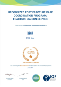 2024年6月、当院は国際骨粗鬆症財団(IOF)主催Capture the fracture®ベストプラクティスフレームワークの『Bronze』(銅賞)施設として認定されました。