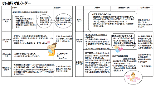 赤ちゃんにとって母乳は最適な栄養です。全ての赤ちゃんが母乳が飲めるよう助産師がサポートします。そのためには赤ちゃんが生まれたら一緒に過ごし(母児同室)、欲しがる時に欲しがるだけおっぱいを含ませることがとても大切です。ママが無理なく母乳育児ができるように、また家に帰ってからの育児に困らないように、毎日助産師がママの気持ちを伺いながらお手伝いします。疲れた時などご希望時には新生児室で赤ちゃんをお預かりします。