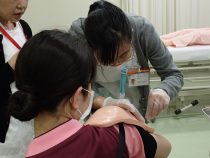 およそ1ヶ月に1回1日かかりで研修を受けています。注射やME機器の取り扱い方法や褥瘡予防方法・輸血・急変時の対応など様々な内容です。現場ですぐに必要な知識や技術を教えて頂けています。